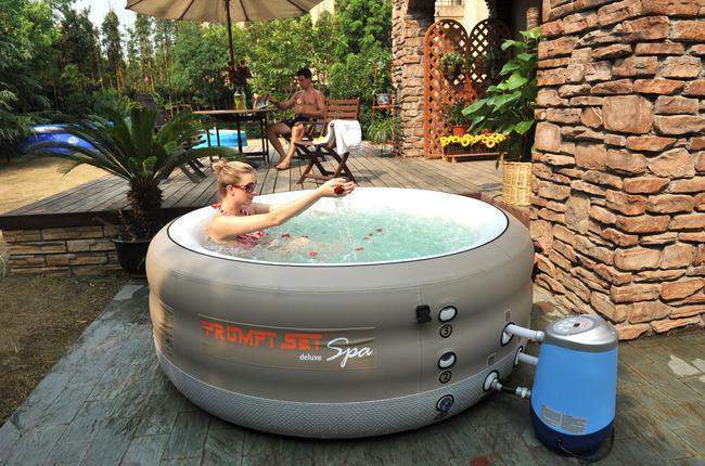 Мобильный надувной спа бассейн (джакузи). Отдыхайте в любом месте своего приусадебного участка! Это так здорово погрузиться в теплую бурлящую воду, особенно в межсезонье. Для установки необходима твердая, горизонтальная поверхность. Бассейн расчитан на 2-х взрослых и 2-х детей.