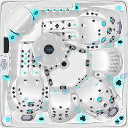 Для изделия таких размеров, в гидромассажном СПА-бассейне Ловиа Спа L509 установлено довольно много форсунок - 37 штуки. Через них вода и воздух направленно воздействуют на тело, производя желаемый гидромассажный эффект. Каждый пользователь может индивидуально регулировать силу потока.